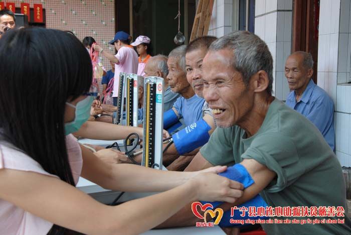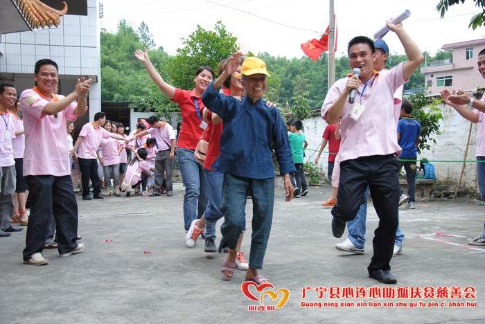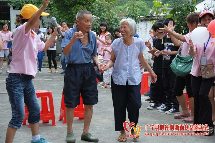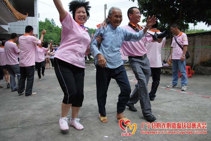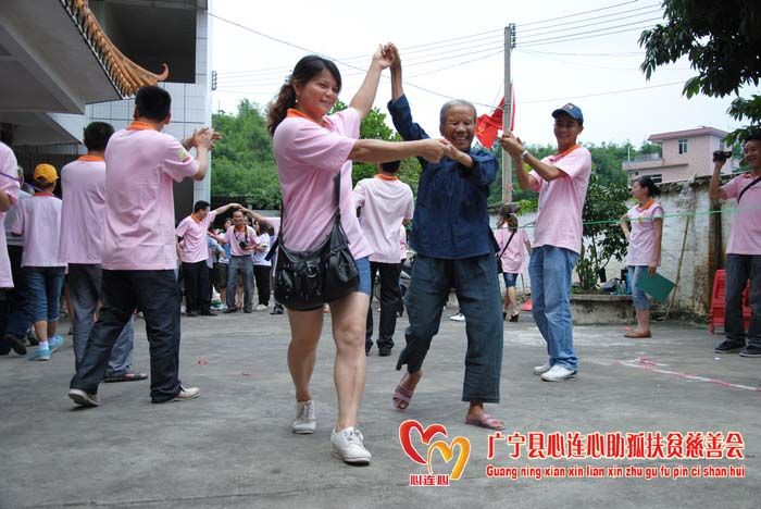 6月3日古水镇敬老院呈现一片温馨、欢乐、和谐的气氛。广宁县心连心助孤扶贫慈善会义工、学生、老师95多人来到敬老院开展“心连心相聚一家亲之关爱夕阳红”活动。
