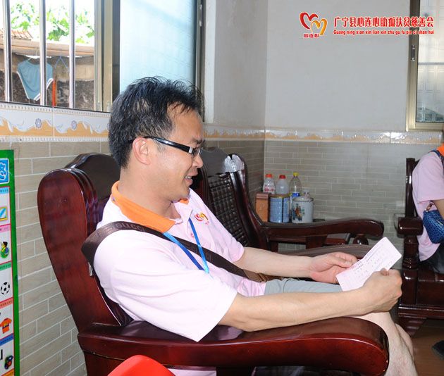 2013年6月29日,红红的太阳像火球一样,高高的挂在天空,把大地烤的滚滚烫的。花草树木都无精打采,垂下了头。炎热的夏天,陈耀机、钟国华、梁嘉月副会长和一班热心的义工们在百忙之中抽出一天的时间,对木格、石咀镇的在册受助学生进行了探访,会长、义工亲切友好的关怀,使孩子感到亲切、开心。通过与邻里、监护人谈话中了解他们目前的生活、学习情况,正确引导他们学会感恩,滴水之恩当报之泉涌,并学会与人沟通,尊老爱幼,从小树立做一个自己信、自强、肯担当的人,让他们有一健康的成长历程。
