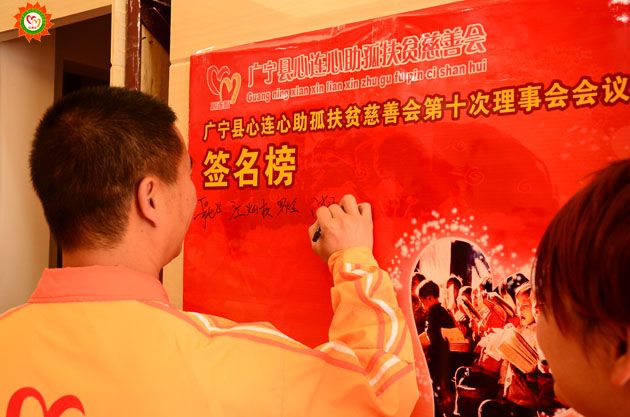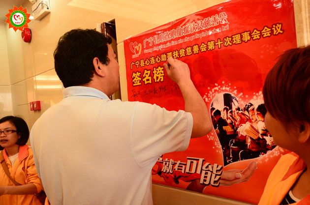 广宁心连心慈善会第十次理事会完满结束 3月29日下午,广宁县心连心助孤扶贫慈善会第十次理事会,在鸿城大厦会议室举行,心连心历届会长、副会长、理事、会员代表和义工代表共140多人从各地赶来参加会议,县委常委冯永忠、县民政局局长黎秉钤,及县妇联、共青团的领导出席了会议。 本次理事会议程分两节进行,在第一节议程中,本届会长陈诗国代表慈善会向理事会做2013年工作总结和2014年工作计划;义工团团长陈燕容做义工团2013年工作总结和2014年工作计划;对57名优秀义工和4名优秀服务队长进行表彰,同时对历届会长、副会长、理事、义工团正副团长 进行表彰,嘉许他们的用心付出。最后县委常委冯永忠讲话,他代表县委县政府充分肯定了心连心五年来为广宁县慈善事业做出的卓越贡献,并对心连心未来的发展寄予了厚望。 在第二节议程中,理事会成员共同磋商建设儿童福利中心的相关事宜,现场承诺捐款将近300万元;一致通过提任义工团团长陈燕容、卢海婵、谢水金为广宁县心连心助孤扶贫慈善会副会长,嘉许他们五年来为慈善会发展做出的无私奉献;理事会成员还为心连心未来发展的其他重点事项出谋献策。最后与会全体成员在鸿城酒店共进晚餐。 本次理 事会在县领导的关心下,理事会成员的共同参与下,义工们的默默付出下取得圆满成功。这是一场感恩快乐的盛会,将引领着心连心助孤扶贫慈善会更好地发展。感恩所有工作人员和义工们台前幕后的默默付出。